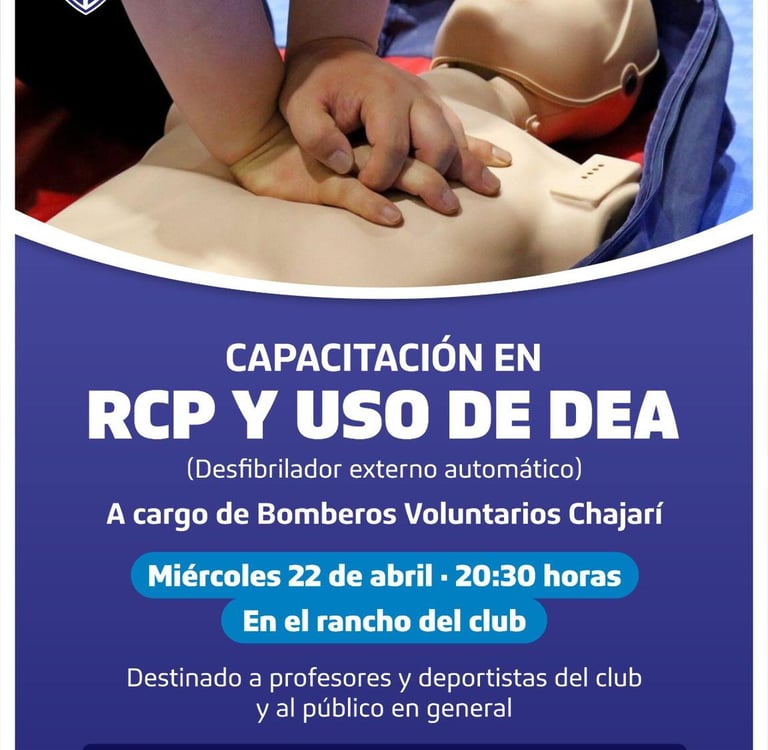 ¡Excelente noticia para toda la comunidad! Desde el Club Vélez de Chajarí invitan a participar de una jornada de formación vital: Capacitación en RCP y uso de DEA. Aprender estas maniobras es clave para actuar con seguridad, calma y responsabilidad ante una emergencia.