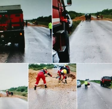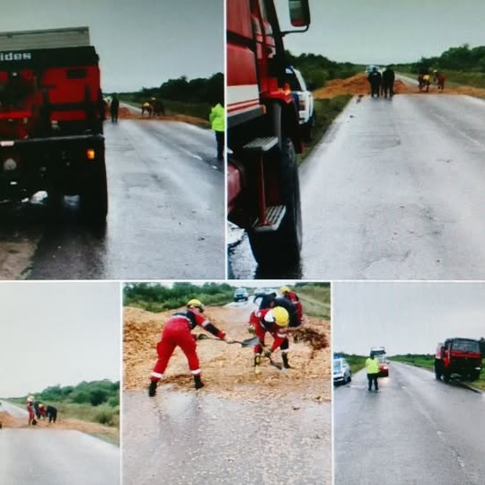 Bomberos Voluntarios realizan muchas tareas y ésta es una de las tantas, como despejar y así garantizar la seguridad en nuestras rutas.